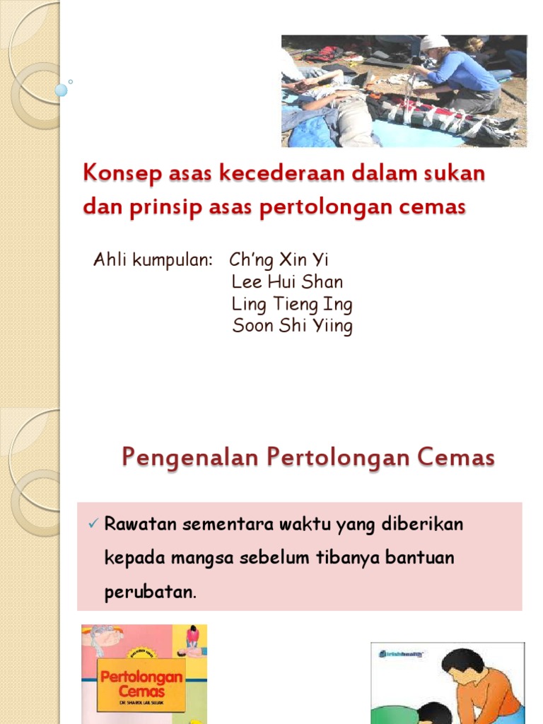 Related : Prinsip Asas Pertolongan Cemas : Konsep asas kecederaan dalam sukan dan prinsip asas pertolongan cemasdefinisi pertolongan cemaspertolongan cemas adalah bantuan permulaan atau rawatan awal yang diberikan kepada mangsa atau pesakit..