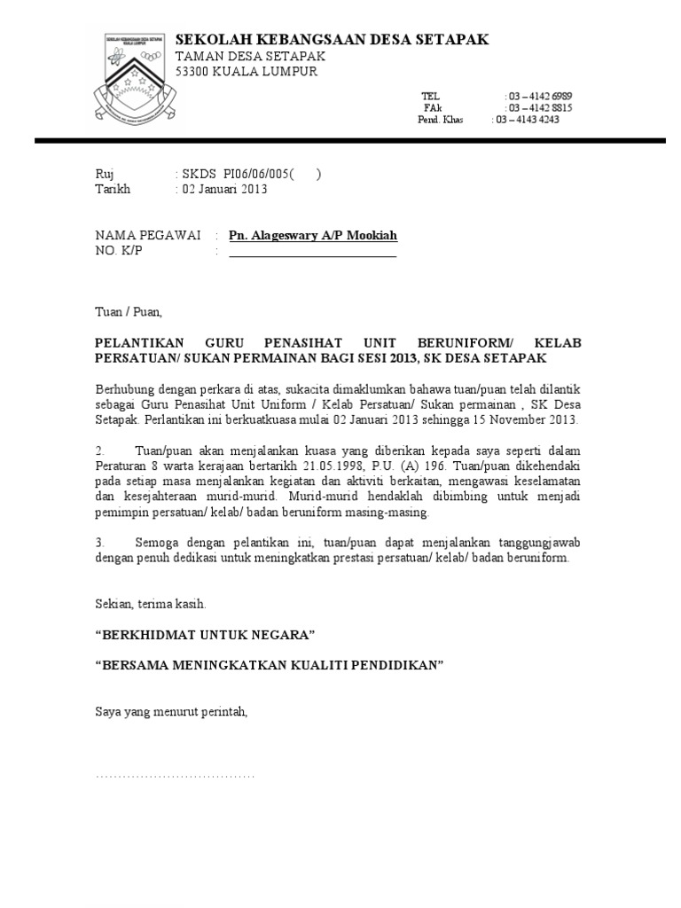 15 contoh surat pelantikan ketua panitia m/pelajaran dengan ini en.