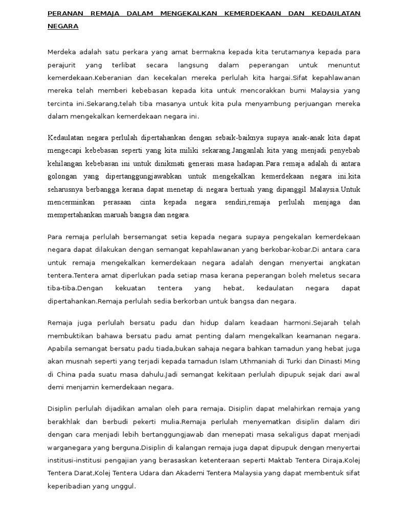 Related : Peranan Pemimpin Dalam Mengekalkan Kedaulatan Negara - Peranan remaja dalam mengekalkan kemerdekaan negara malaysia..